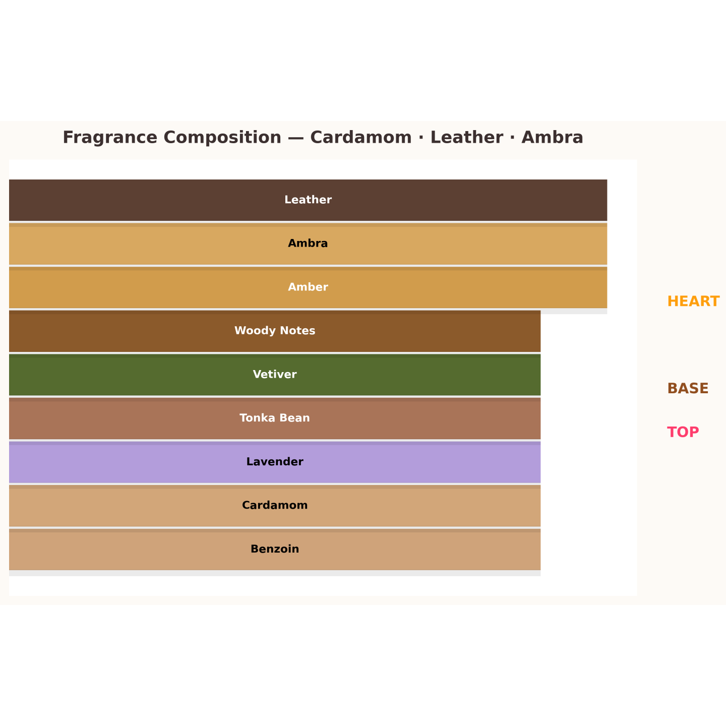 ✔ Cœur : ambre, cuir, fève tonka