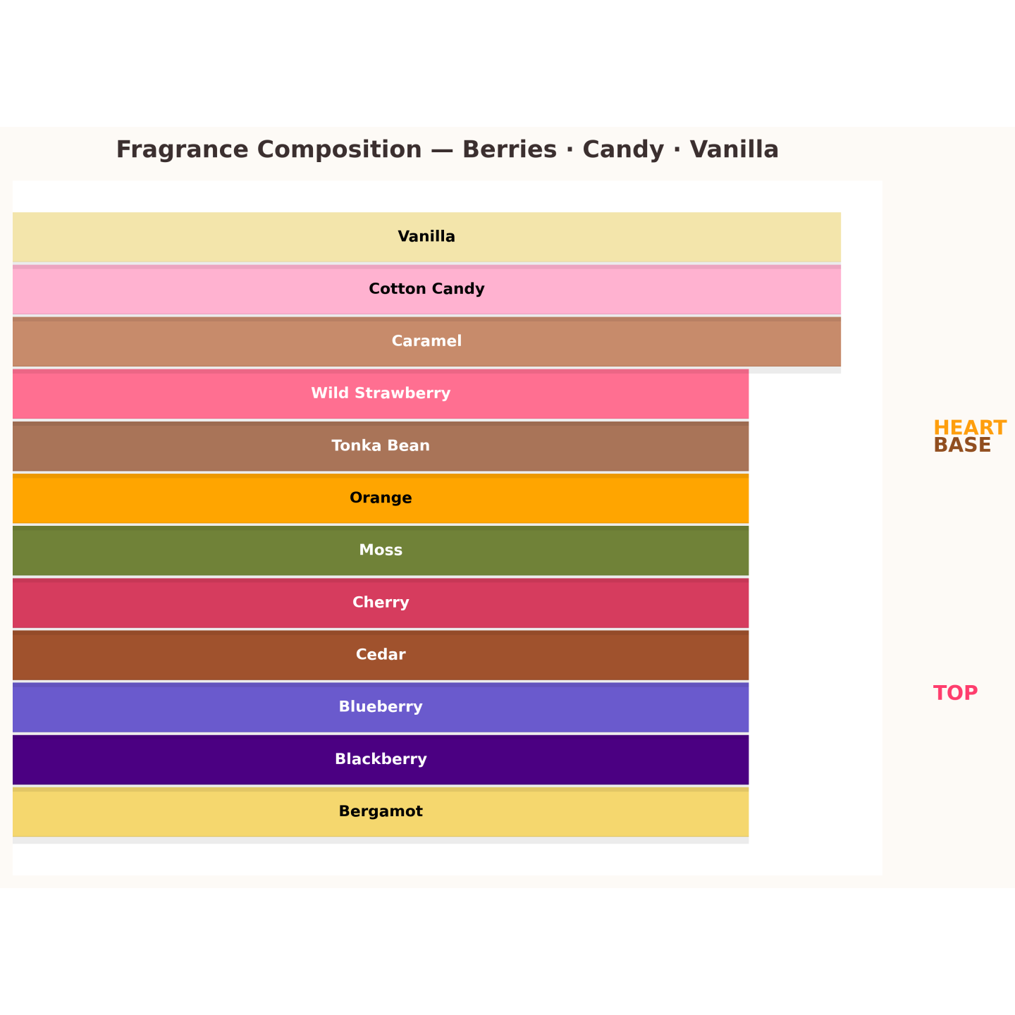 ✔ Cœur : barbe à papa, cerise, fraises des bois