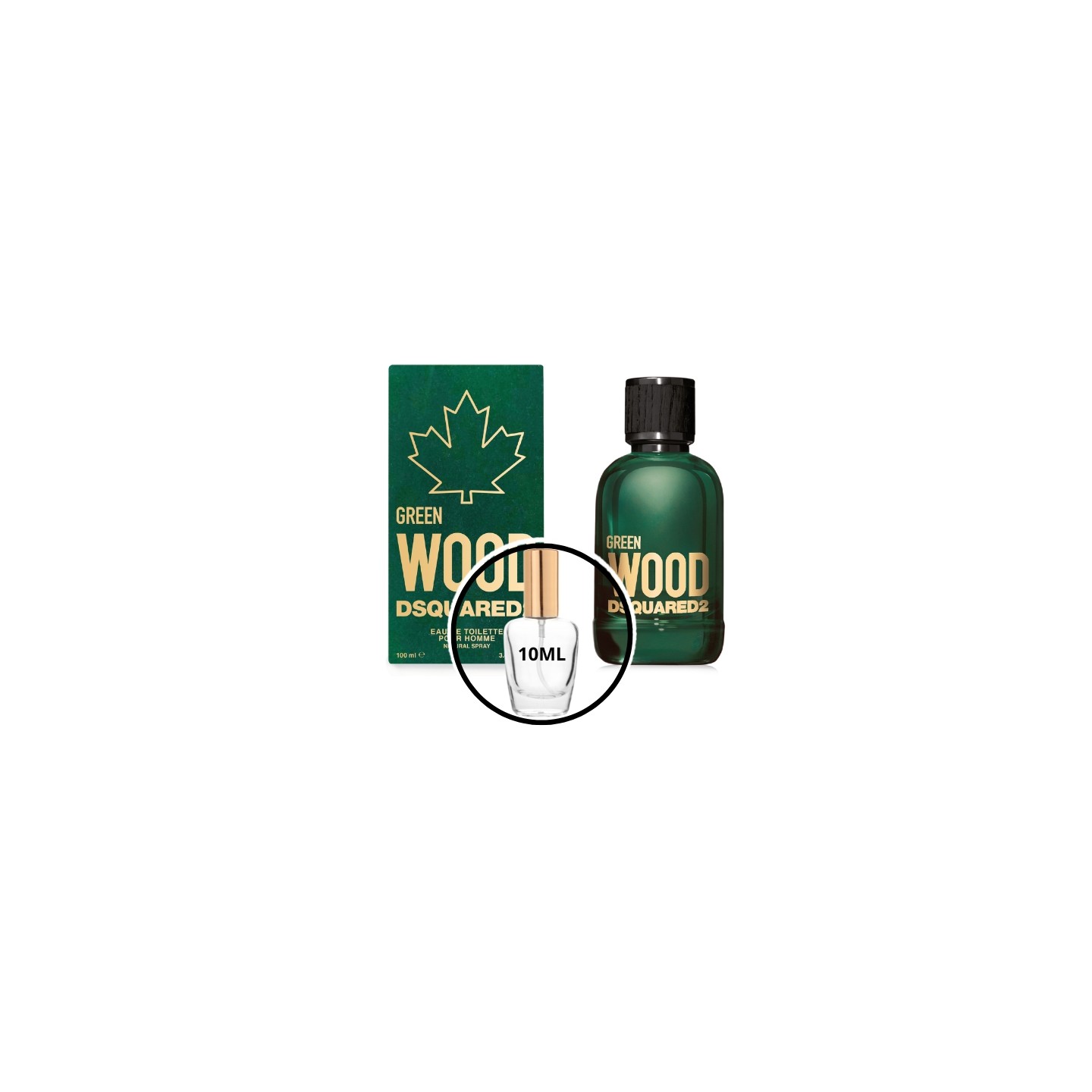 Dsquared2 Green Wood Pure Homme, décant de 10 ml – un parfum masculin frais, boisé et aromatique, à la profondeur terreuse et au caractère moderne.