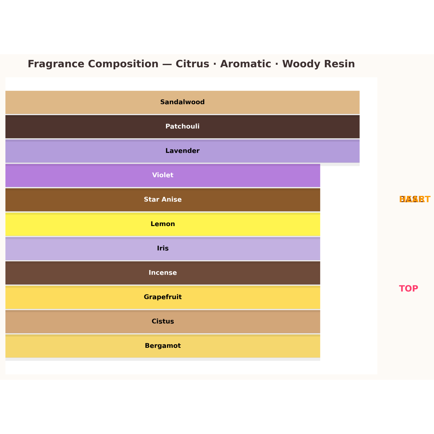 ✔ Cœur : lavande, anis étoilé, violette, encens