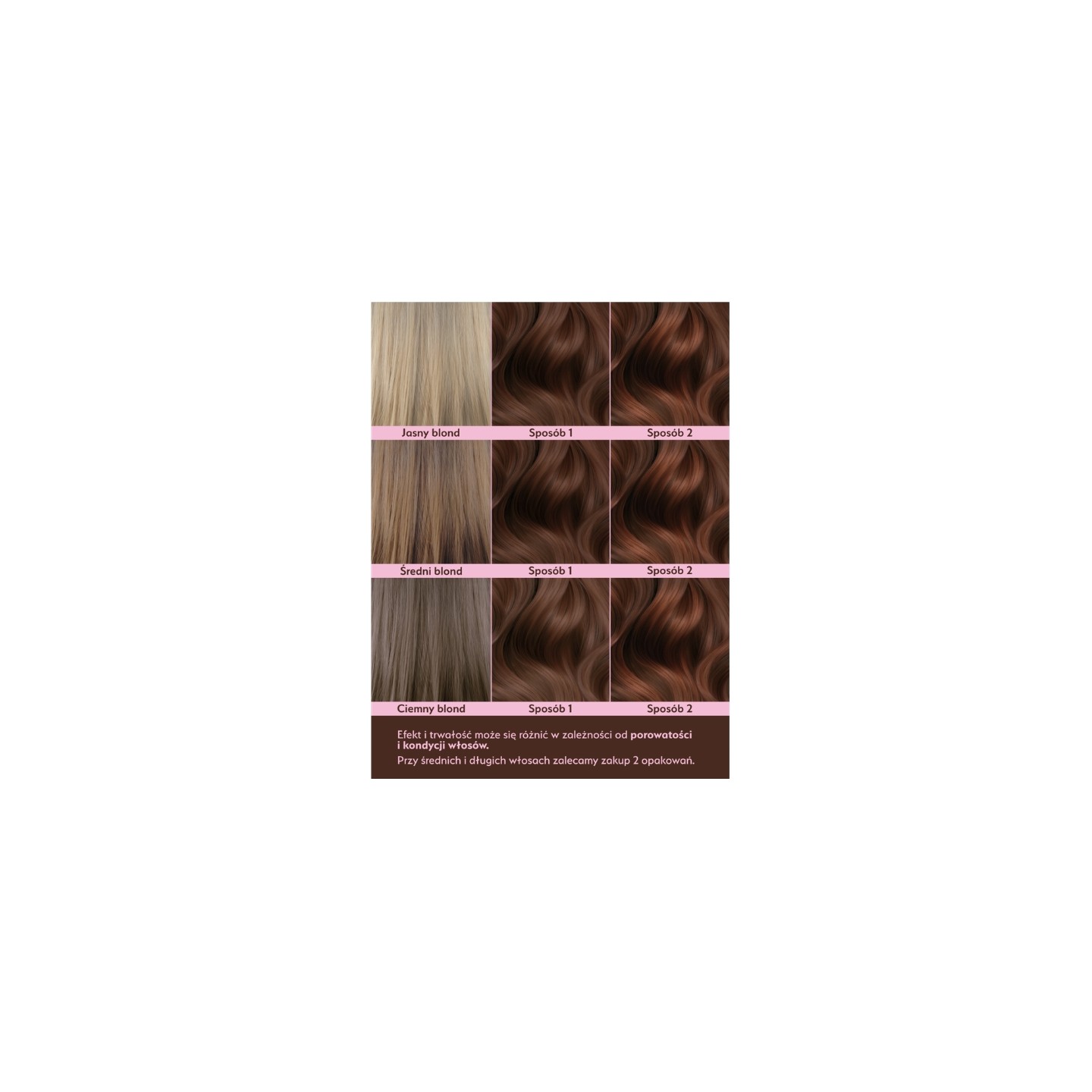 Méthode 1 – Coloration complète : Mélanger la crème colorante avec l’émulsion (1:1). Appliquer sur cheveux secs ou sur les racines. Laisser poser 40 minutes. Rincer et appliquer un masque Bond-Aid.