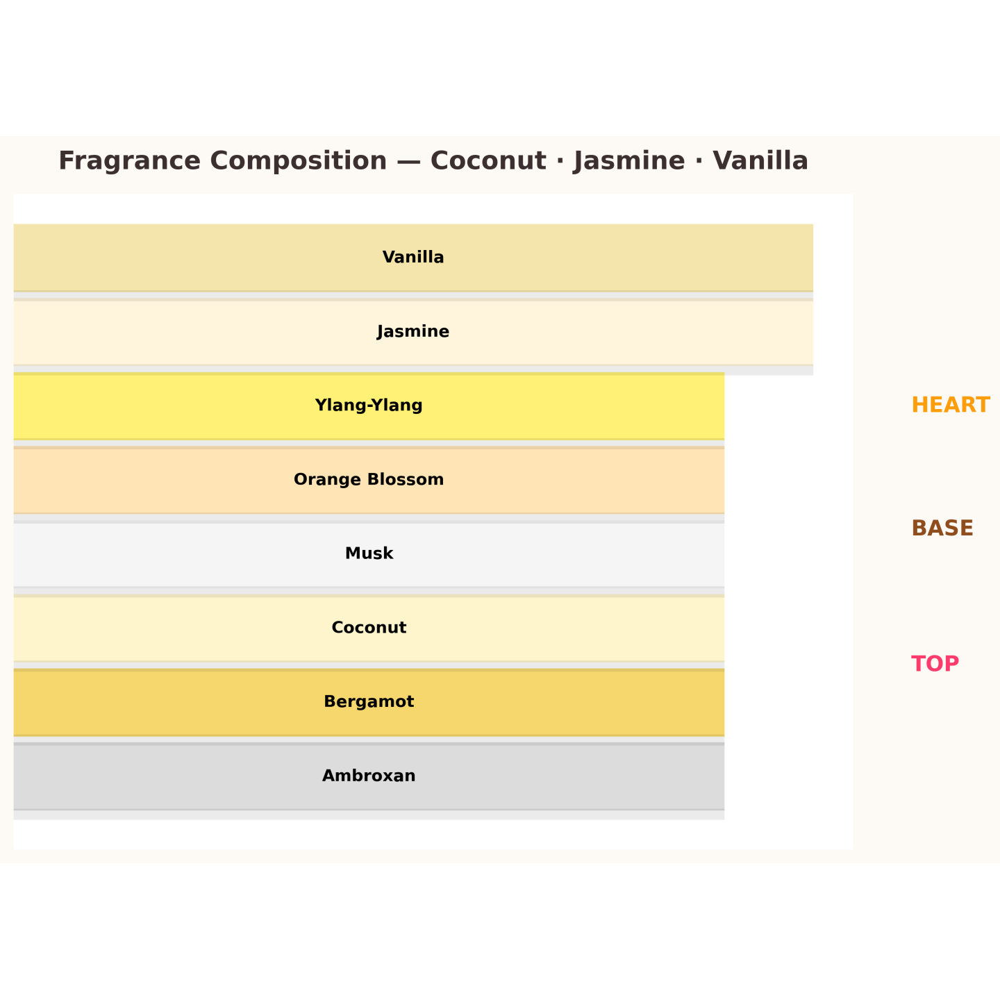 ✔ Połączenie świeżości bergamotki z kremową słodyczą wanilii i elegancją jaśminu oraz ylang-ylang daje zmysłową równowagę.