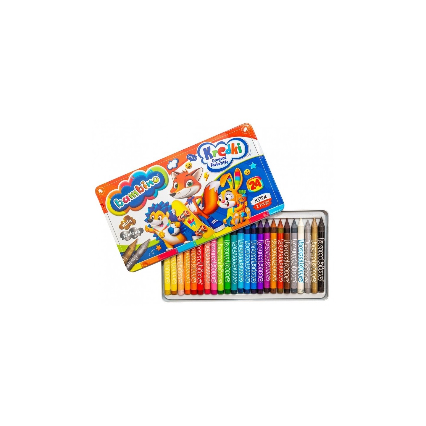 BAMBINO MINI ZOO kleurpotloden zijn de perfecte set voor kleine kunstenaars. Deze kleurpotloden zijn gemaakt van kaolienklei en bieden intense, verzadigde kleuren die perfect zijn si zowel tekenen als het inkleuren van grote oppervlakken. Elk potlood heeft een papieren omhulsel met schattige dieren, waardoor het leren van kleuren makkelijker wordt en tekenen nog leuker. De set wordt geproduceerd in Polen, voldoet aan de veiligheidsnormen voor speelgoed en is verpakt in een mooie metalen doos – perfect om cadeau te geven en veilig op te bergen.